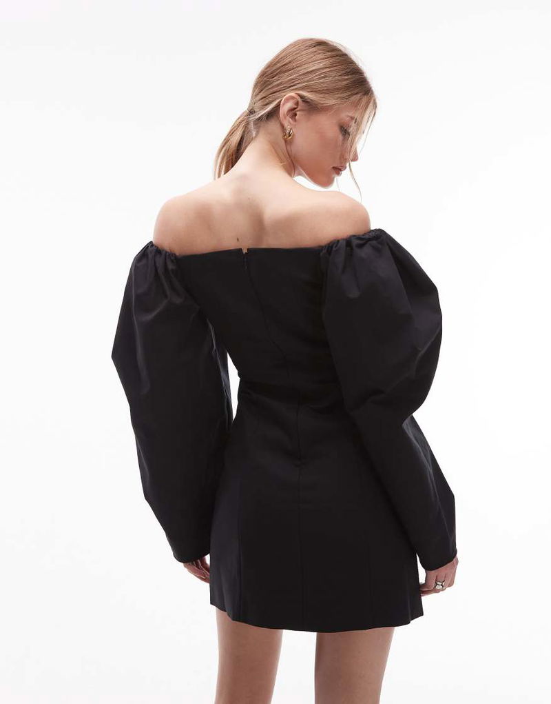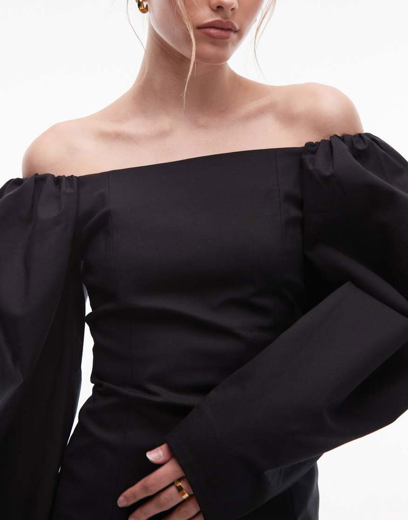 Big Volume Sleeves Off Shoulder Fitted Mini Dress In Black