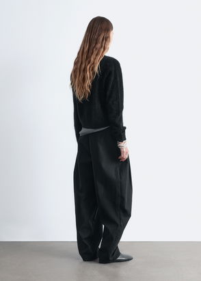 Fluffy bouclé knitted cardigan with a boxy, cropped silhouette and gold-toned button closures. Dropped shoulders.