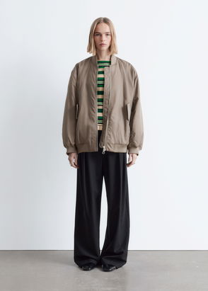 Buttoned long sleeve jacket with a quilted finish and a boxy finish. Duo angled pockets.