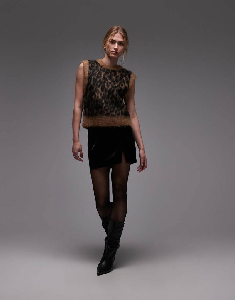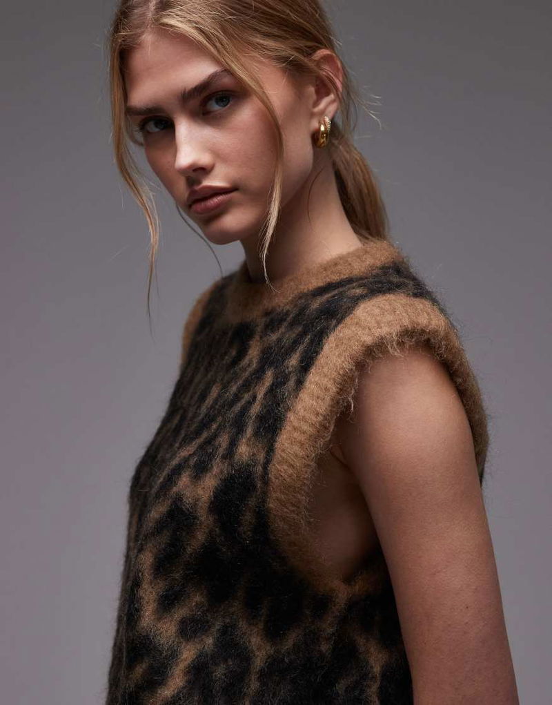 Brushed hairy mohair merino wool blend knitted vest.