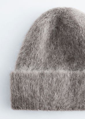 Soft beanie knitted from a hairy blend of mohair and responsible wool, with a fold-over cuff and ribbed finish to ensure a snug, cozy fit.