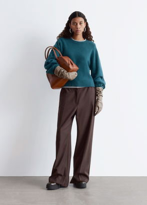 Crewneck sweater with voluminous sleeves in a jacquard knit.
