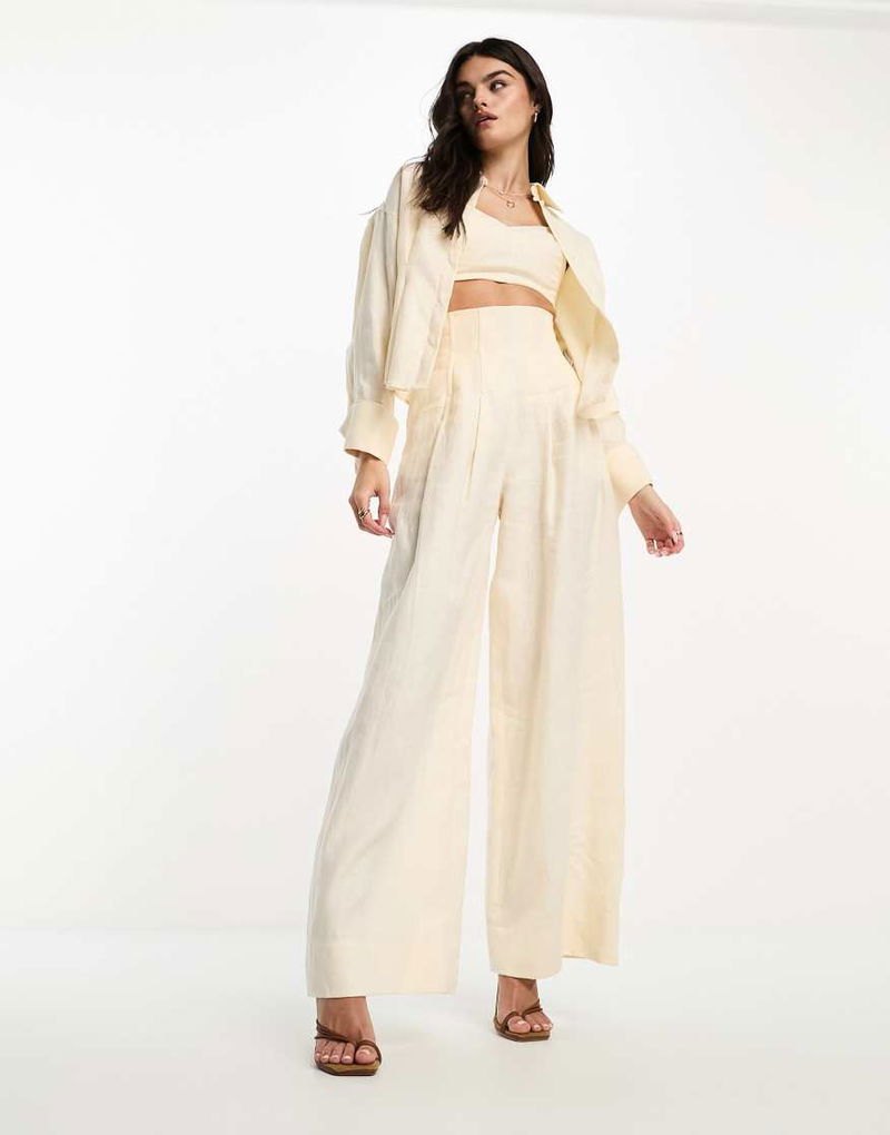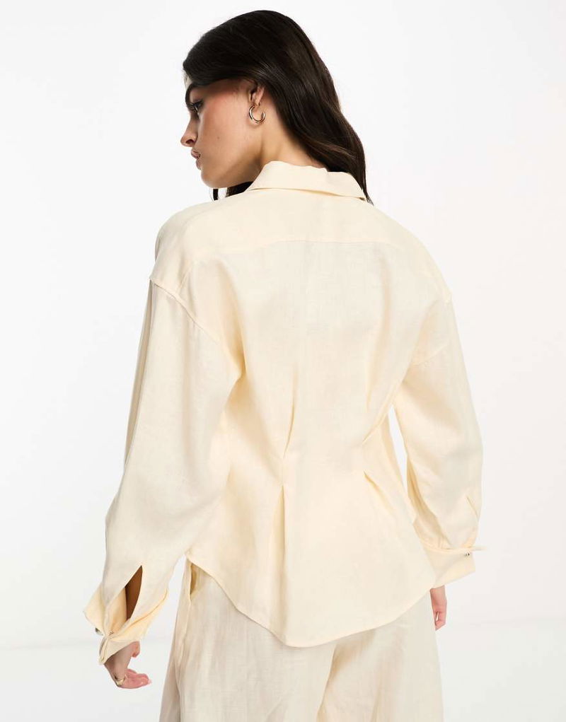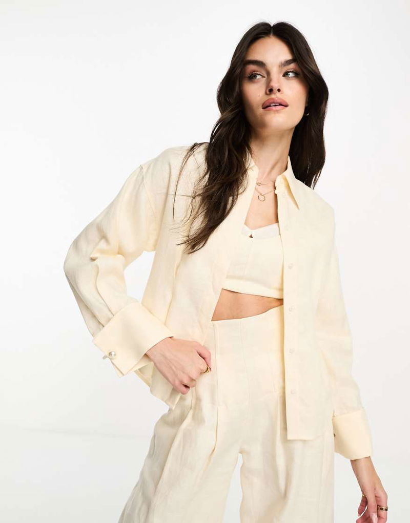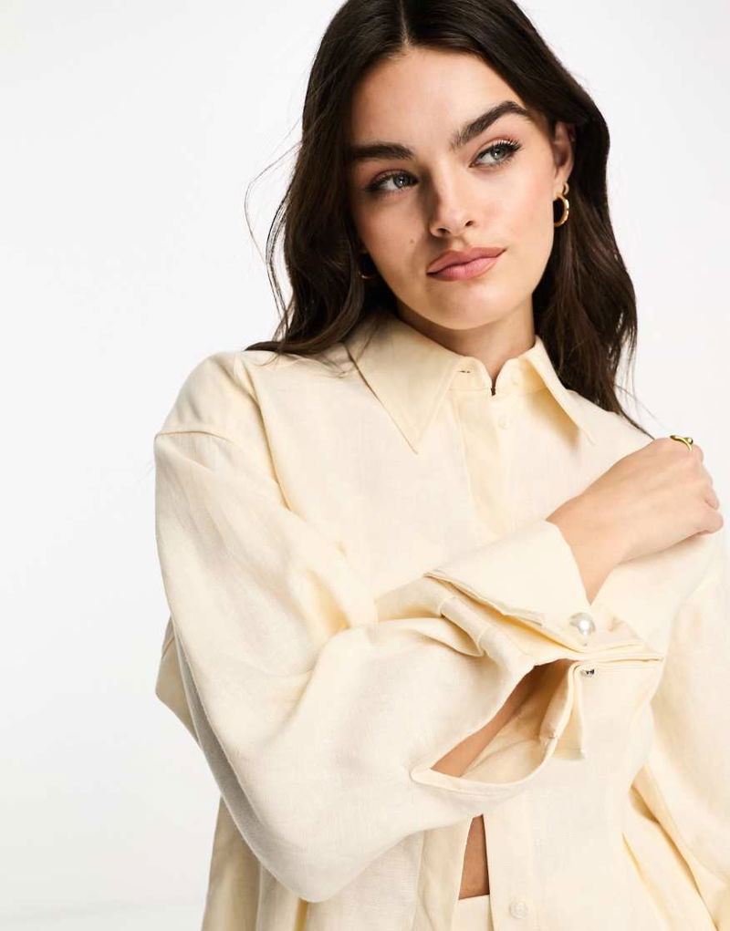 Co-ord Linen Raw Edge Shirt With Pearl Detail.