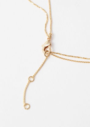Gold-toned layered three chain necklace with a glossy coin pendant.