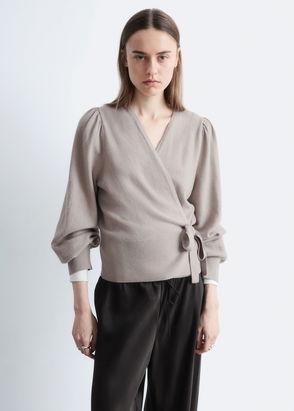 Collared long sleeve merino wool knit cardigan with a fitted, ribbed waist and cuffs.