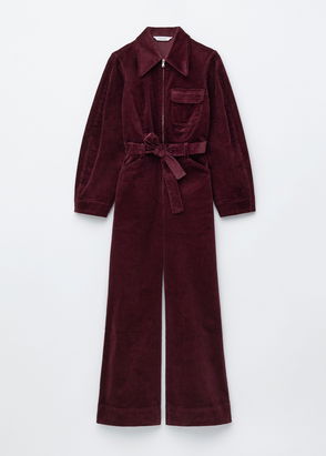 Spread collar Zip fastening Short sleeves Functional pockets Tie waist Straight leg Regular fit.