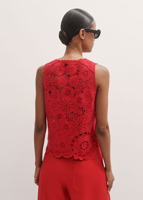 A modern take on 70's boho, this sleeveless vest top is crafted from pure cotton in a pointelle-knit crochet design featuring shell motifs, offering an artisanal feel to your wardrobe. Traced with delicate pearl buttons down the front. Pair with a flowy maxi skirt or denim shorts.