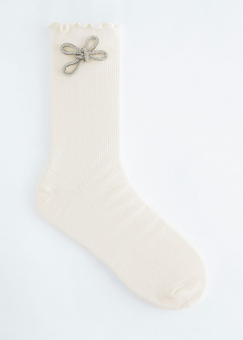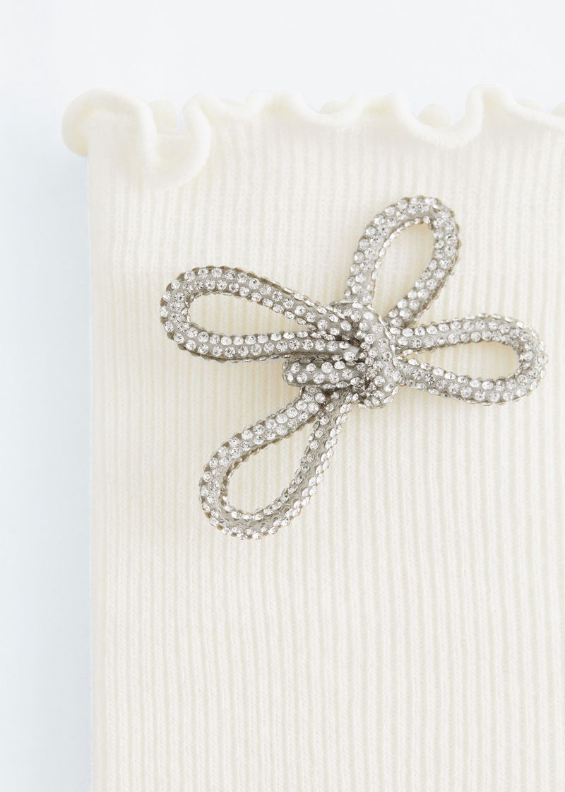 Made from a rib-knit cotton blend, these socks feature an overlocked edge and a bow at one side, adorned with sparkling mini crystals.