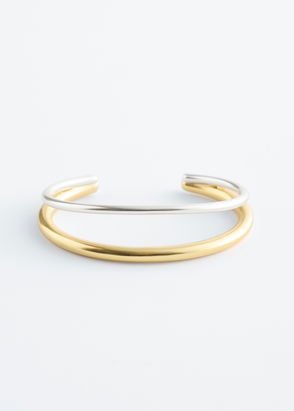 Open cuff bracelet featuring an assymetrical finish.