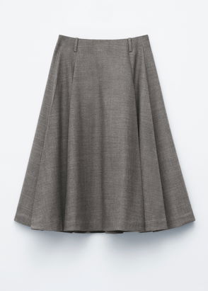 High waisted duo coloured pleated midi skirt with an invisible side zipper closure. Raw laser cut hemline.