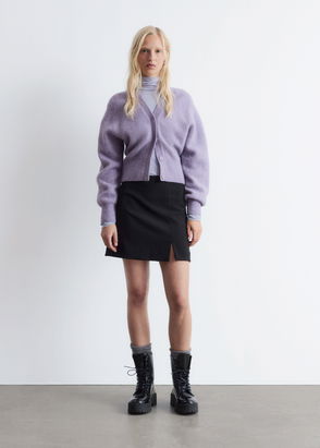 Fitted and buttoned cardigan accented with a faux fur collar.