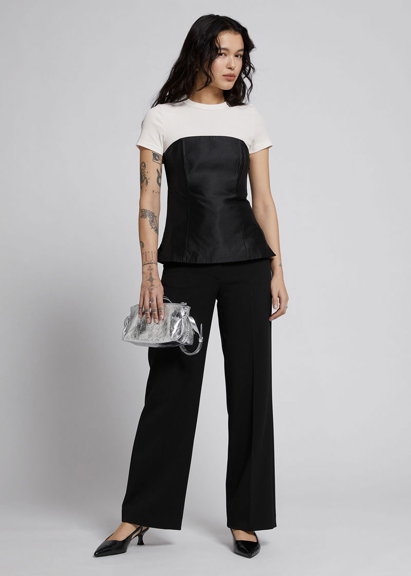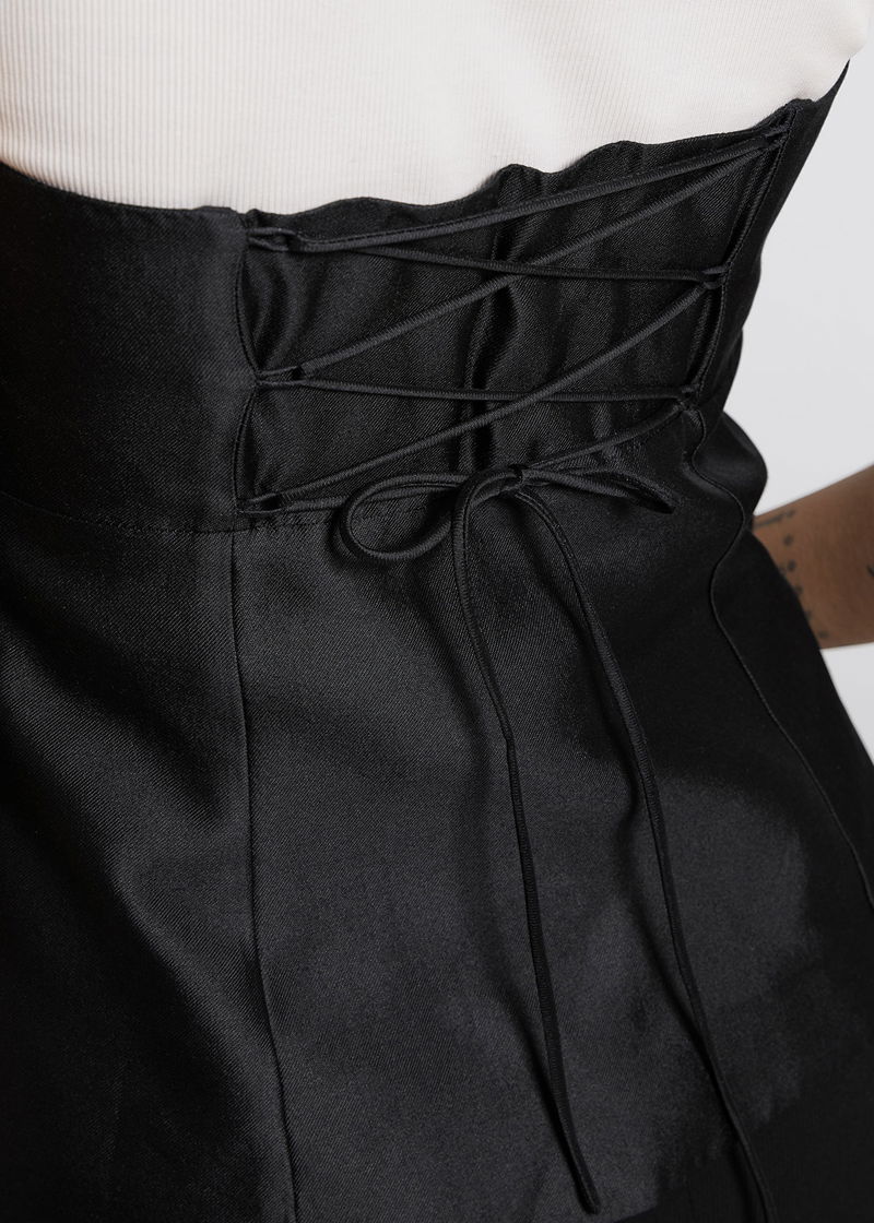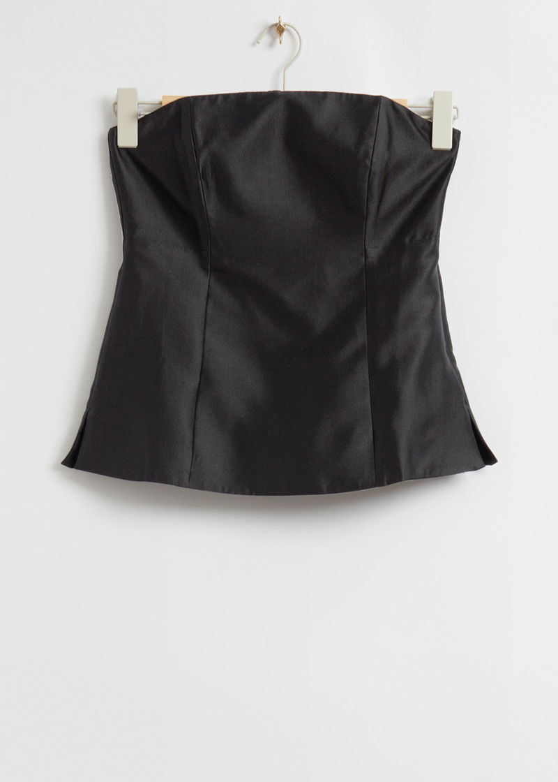 Fitted mulberry silk tube top crafted from mulberry silk and cotton blend. Featuring lattice lacing at the back, a boned side seam and zip closure with side slits, fully lined with cotton.