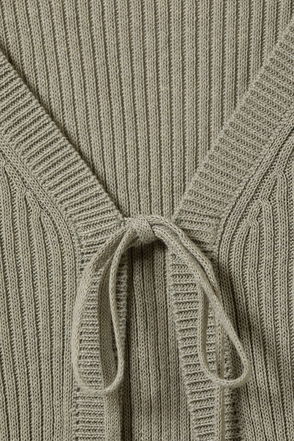 Long sleeve knit cardigan with a fitted silhouette and ribbed finish.