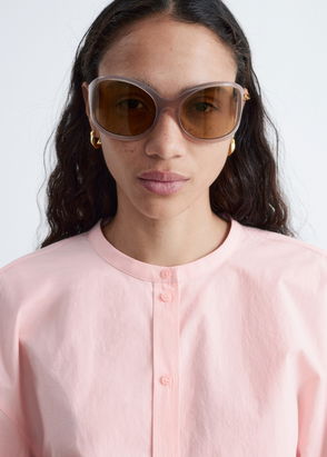 Fitted shirt defined by smocked detailing, gathered shoulders and flared endings.
