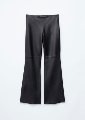 These trousers are crafted from satin twill with an all-over jacquard pattern. Tailored with extra-long, flared legs and subtle vents at the hem.