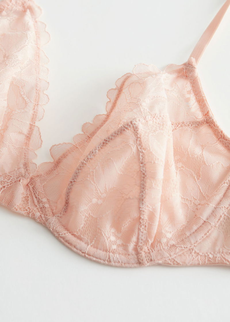 Underwire bra featuring intricate floral lace detailing.