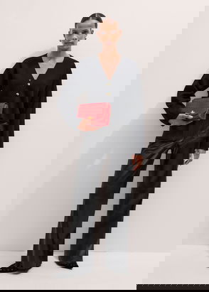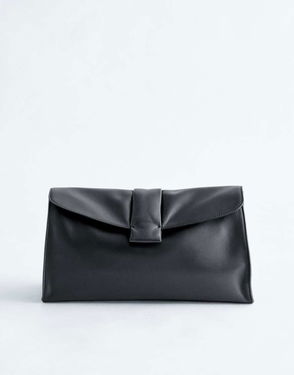 This clutch bag has a folded structure with a magnetic closure that hides a secure zip. Inside there is a patch pocket to house your keys and cardholder.