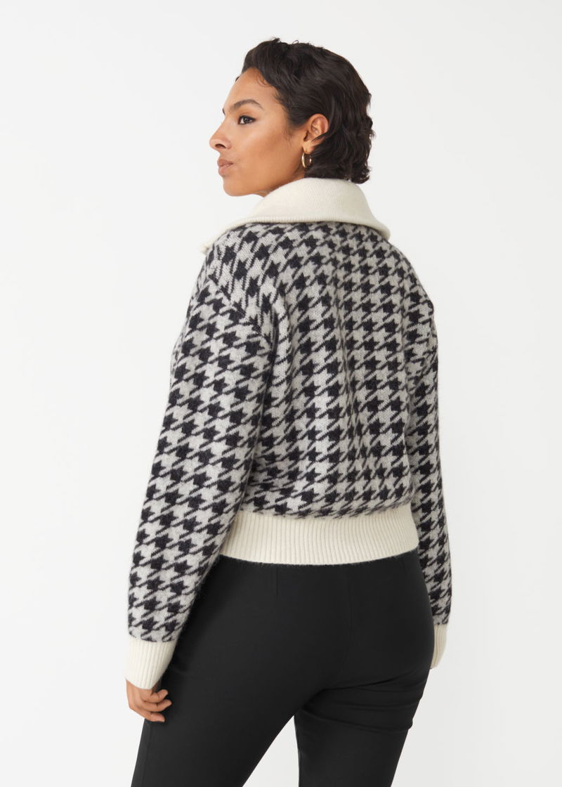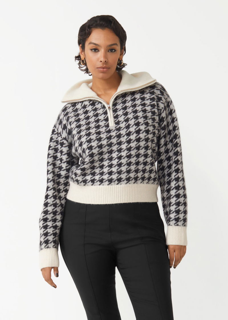 Collared half-zip knit jumper with a fuzzy finish and a relaxed silhouette.