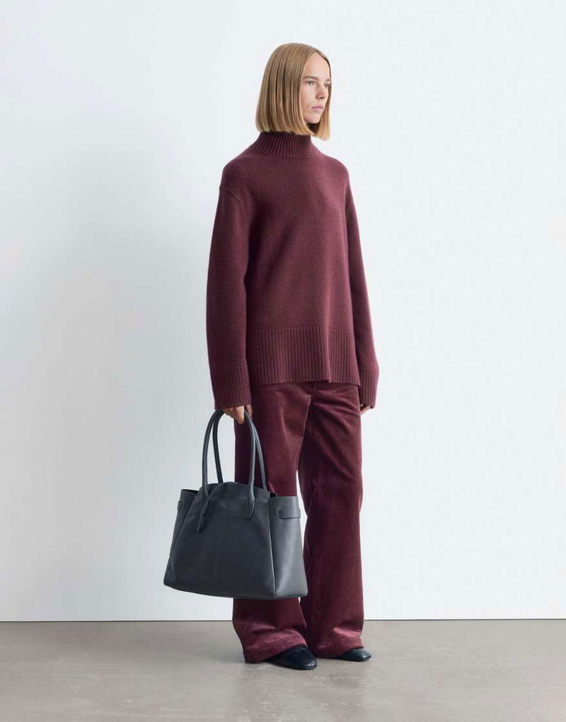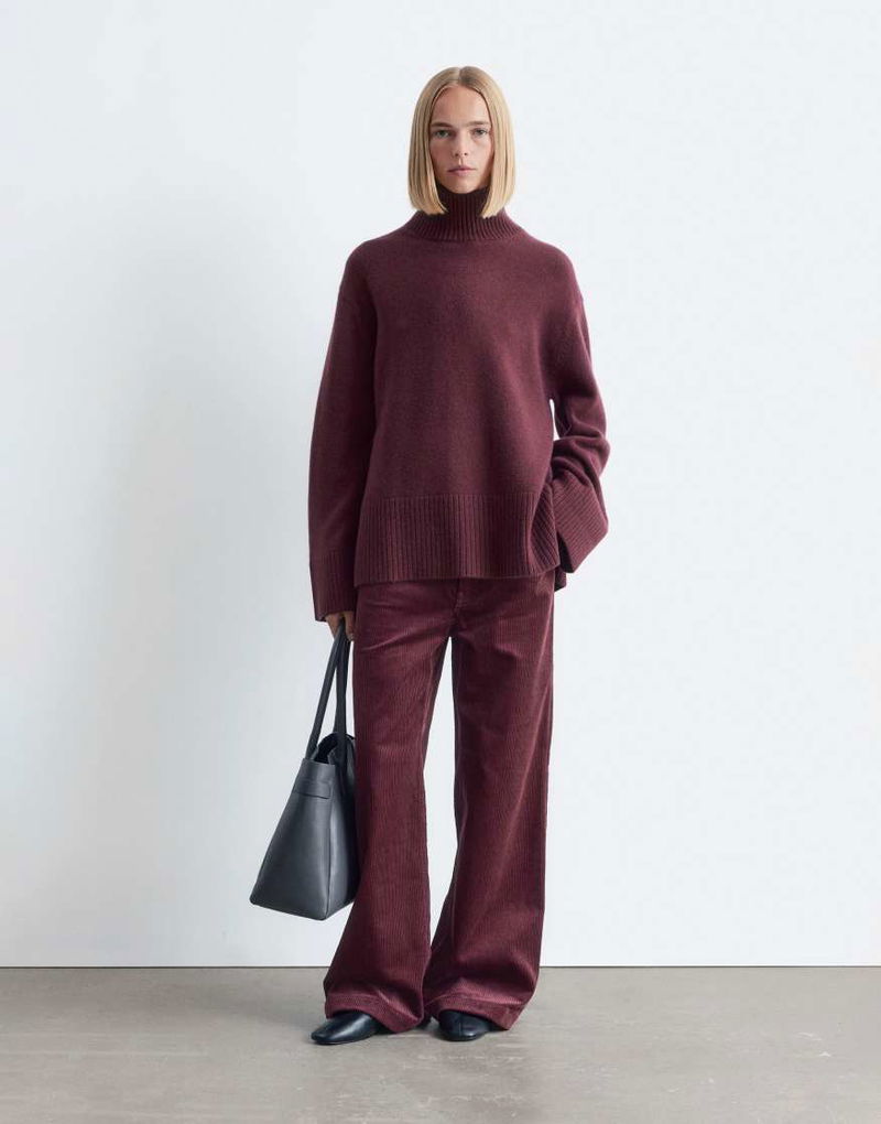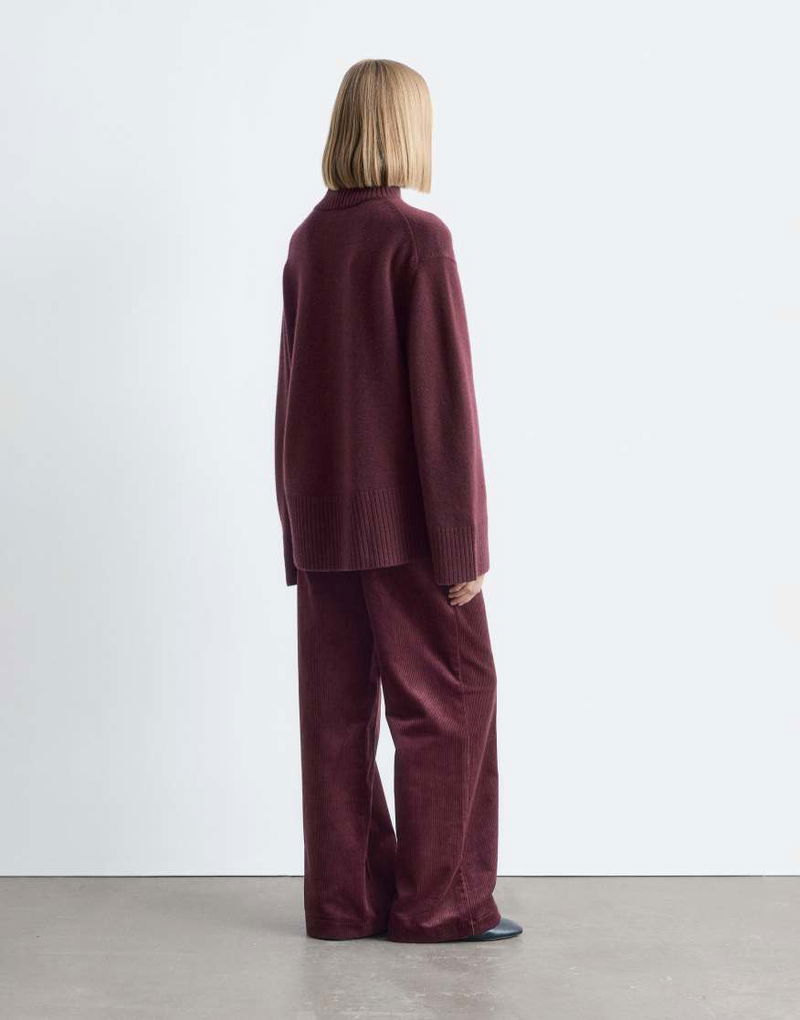High Neck Relaxed Knitted Sweater In Burgundy Plum