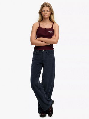 High waist corduroy trousers with a slightly flared silhouette and duo slanted pockets.
