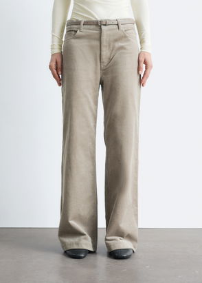 High waisted straight fit corduroy trousers with tortoise button detailing, slanted front pockets and a button cuff.