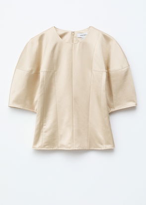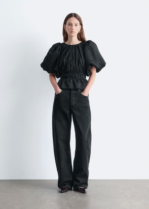 Crafted from jacquard fabric with a crinkled texture, this top features a tapered waist and short, voluminous statement sleeves. Completed with a concealed zipper at the back.
