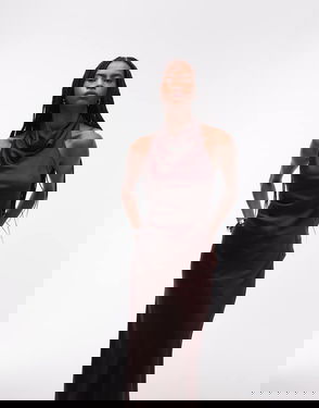 Jersey Maxi Dress With Metallic Clasp Halter Neck In Brown