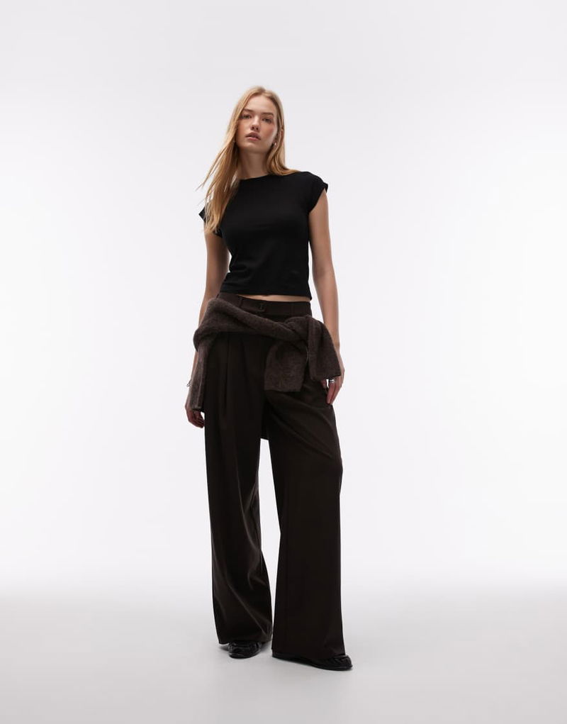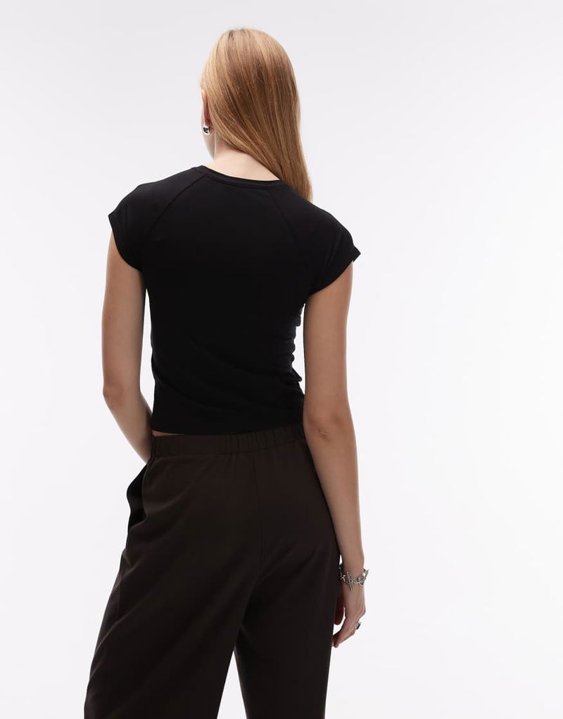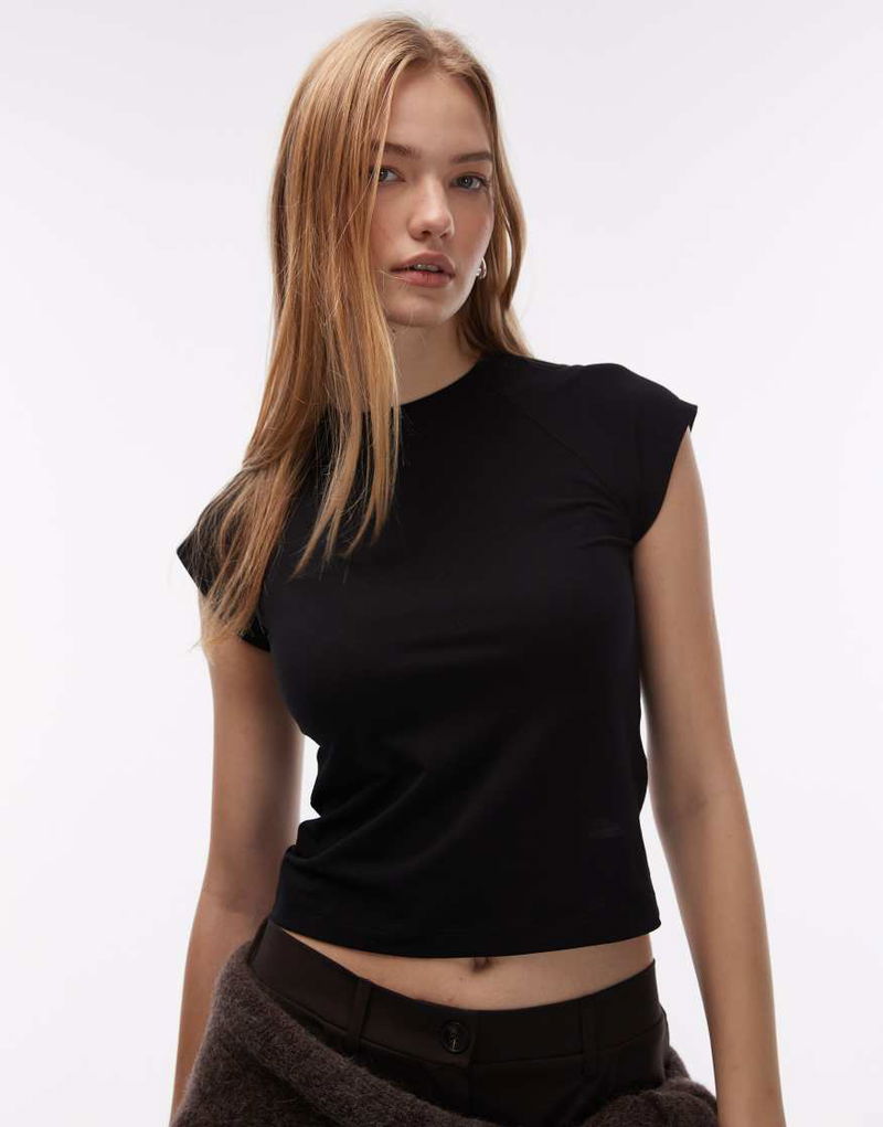 Jersey Slim Fit Crew Neck Top With Cap Sleeves In Black