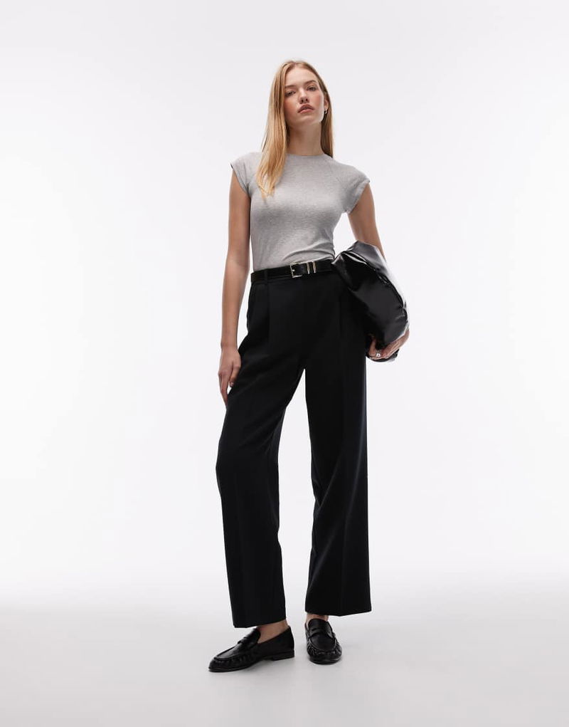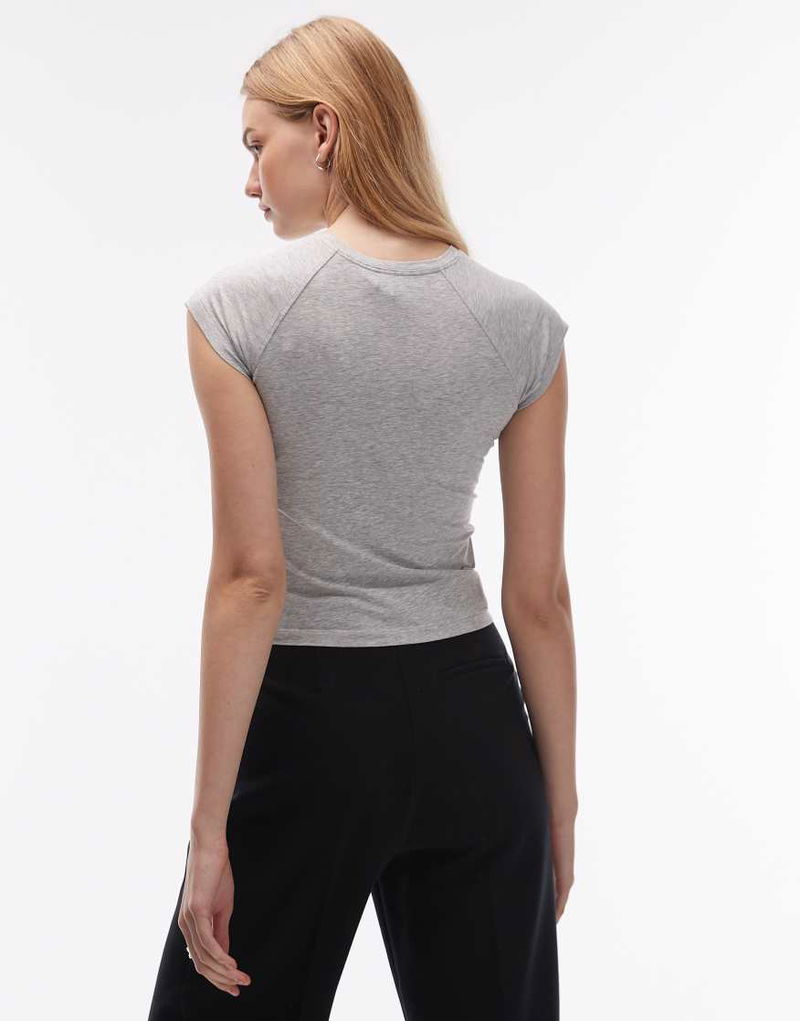 Jersey Slim Fit Crew Neck Top With Cap Sleeves In Grey