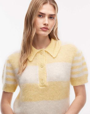 Fine knit polo style t-shirt with three front buttons and a colour blocked collar.