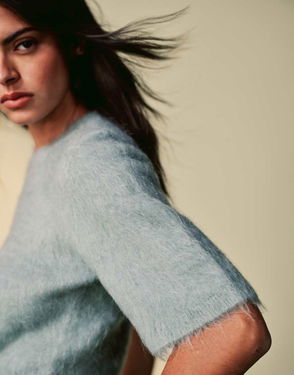 Short-sleeve t-shirt knitted from a wool and mohair blend. Featuring a ribbed neckline, cuffs and hem.