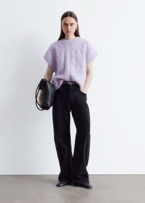 This vest is knitted from a mohair-wool blend with a brushed, tactile finish and features horizontal stripes in contrast colours. It’s cut in a straight shape with a round neck and ribbed trims. Wear it solo or layered over T-shirts and shirts.