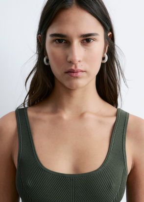 Tank top knitted in an open structure pointelle finish. Featuring a scoop neck, and double-layered rib edges. Regular fit.