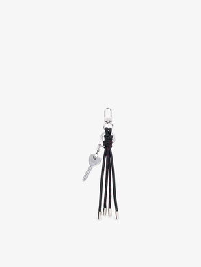 Crafted from a knotted leather, this key chain features logo debossed leather and a gold-tone dog clasp.