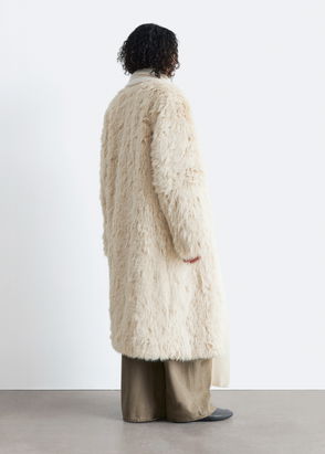 Large Midi Faux Fur Coat In Light Beige
