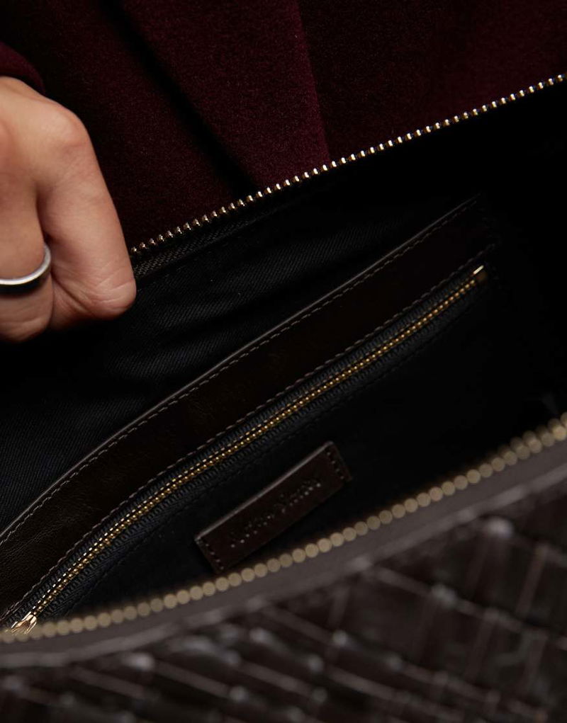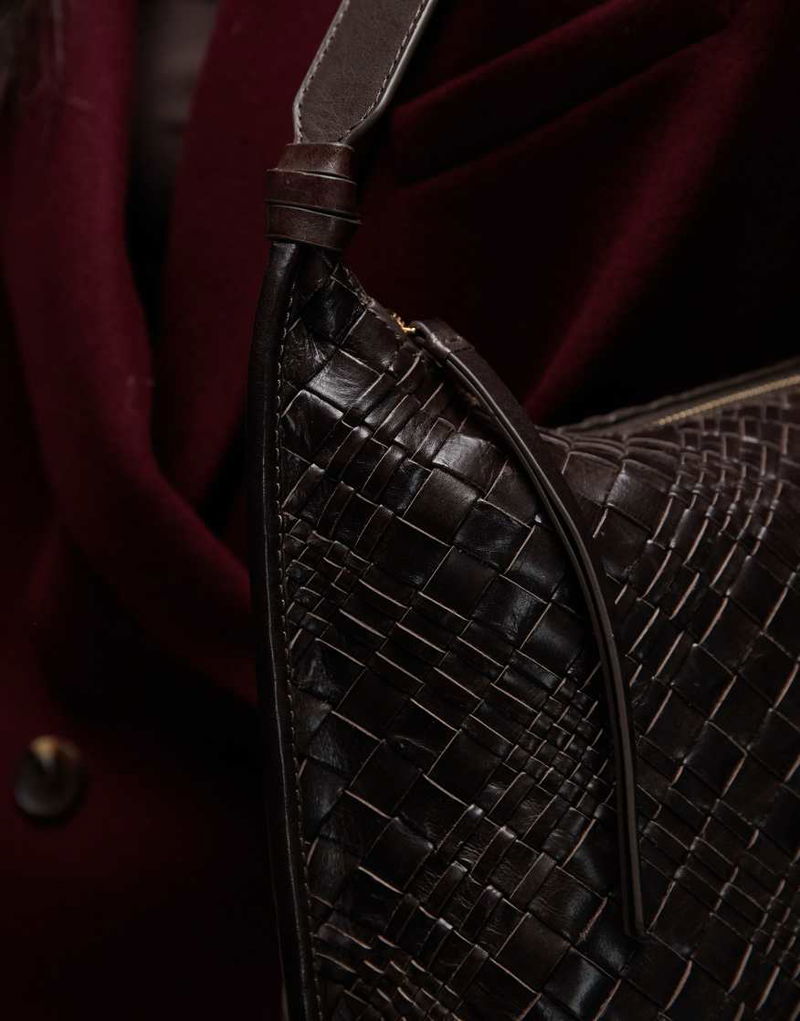 Large Real Leather Curved Braided Shoulder Bag With Fringing Trims In Brown