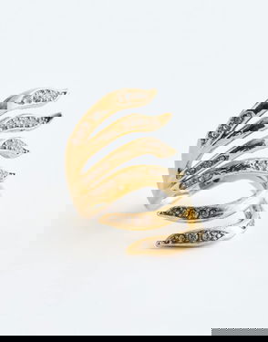 Crafted from polished brass, this ring is sculpted in a wrap design that delicately represents a double-ended leaf. Its textured surface adds depth, further enhancing its visual appeal.