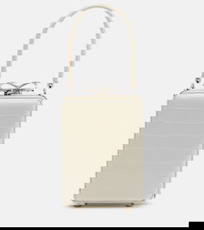 Leather croc embossed baguette shoulder bag with gold toned hardware, duo zipper compartment design and adjustable strap.