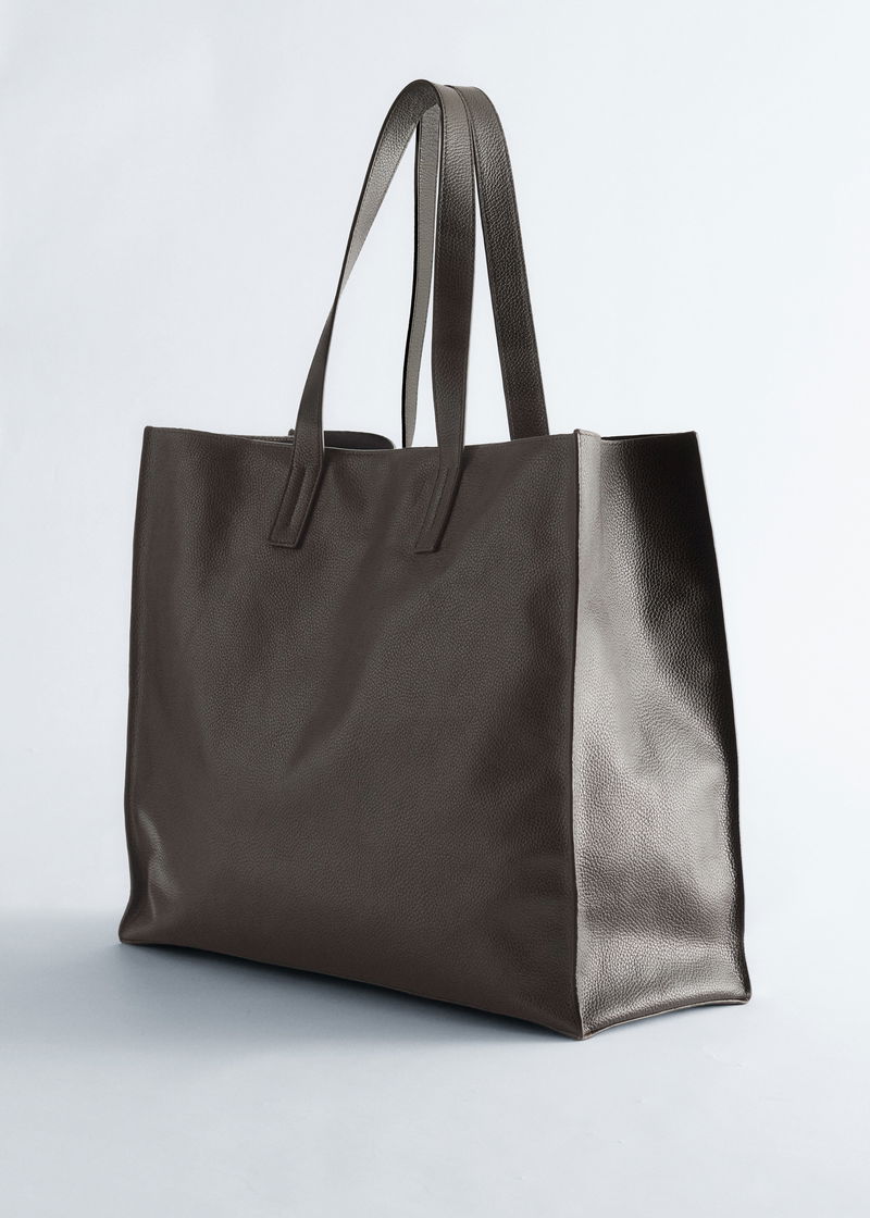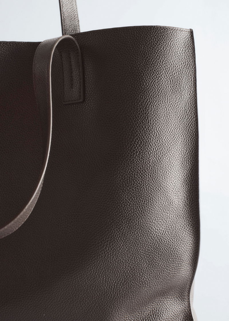 This spacious tote bag is crafted from supple leather and designed in a classic, minimal silhouette with a pair of top handles and an inner pocket.