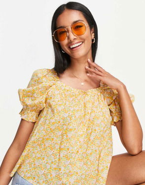 Square neckline puff sleeve top with smocking in the back.
