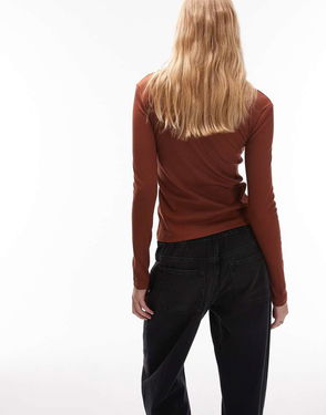 This long-sleeve top is crafted from a cotton-blend jersey featuring a ribbed texture with thin, horizontal stripes. Finished with built-in thumb holes at the cuffs for an unexpected edge.