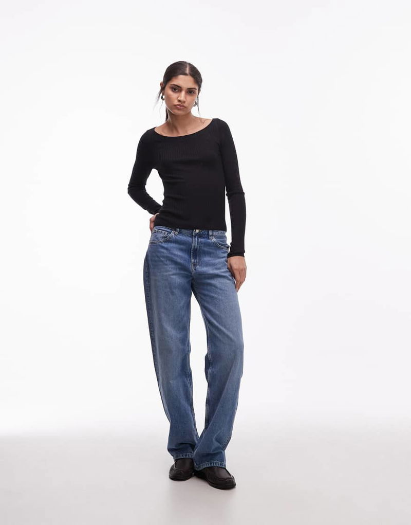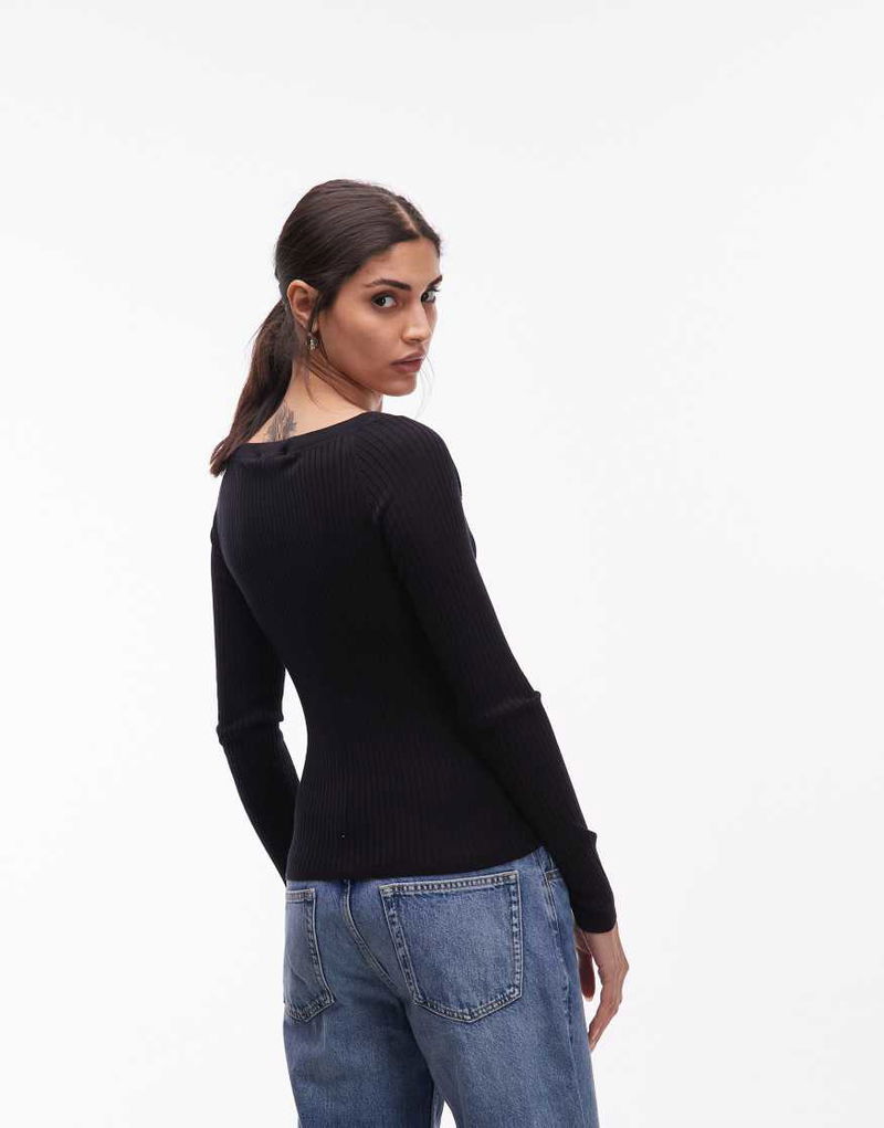Long Sleeve Knit Top With Scoop Neck In Black