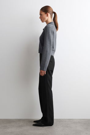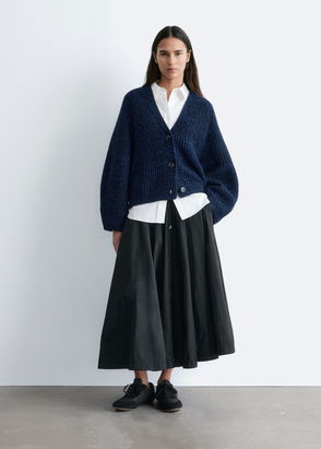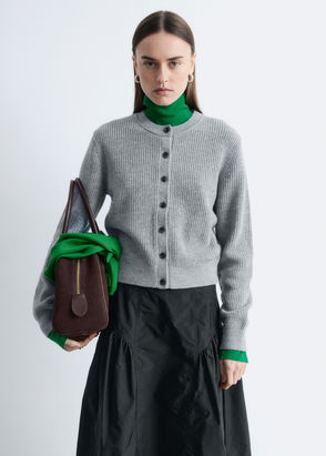 Ribbed cardigan knitted from merino wool featuring three-quarter sleeves.