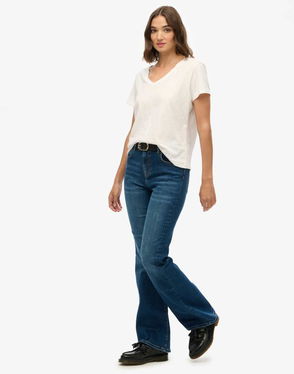 Mid Rise Flare Leg Jeans In Rinse Wash Indigo