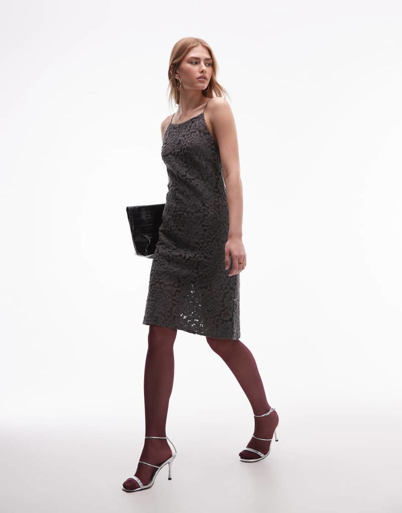 Mini Strap Lace Dress In Grey
