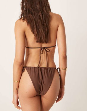 Mix And Match Side Tie Bikini Bottom In Burgundy And White Polka Dot Print