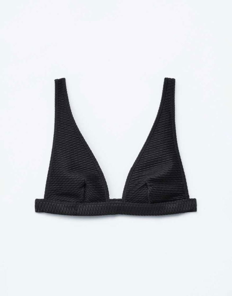 Mix And Match Textured Halterneck Bikini Tops In Black