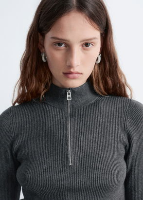 Double-knit jumper with a mock neck, softly shaped sleeves and tubular seams.