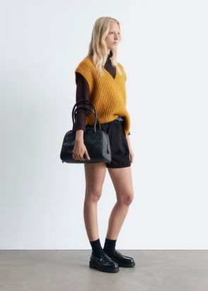 Mockneck sweater knitted from a wool blend. Finished with ribbed neckline, cuffs and hem.