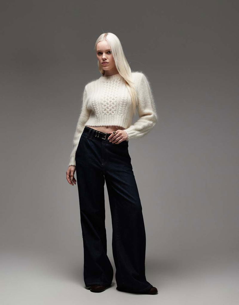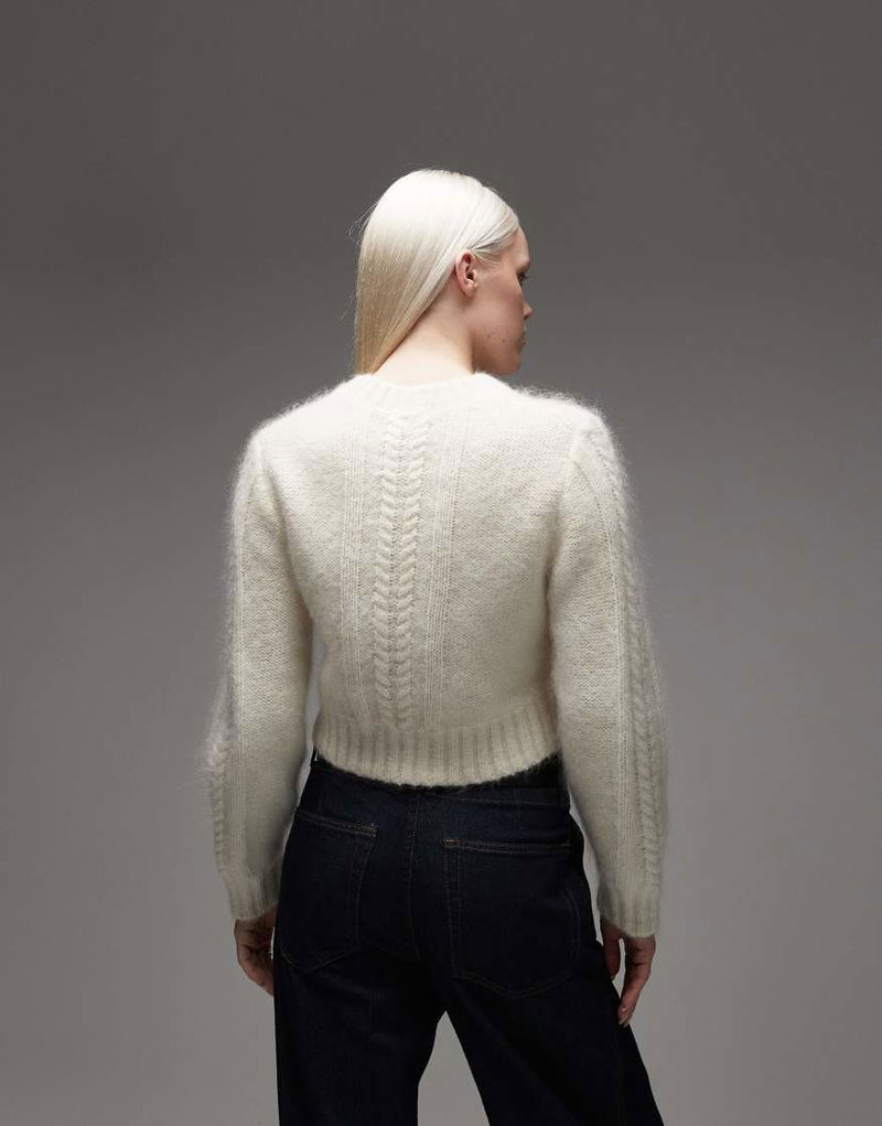 Mohair And Wool Blend Crew Neck Cable Sweater In White